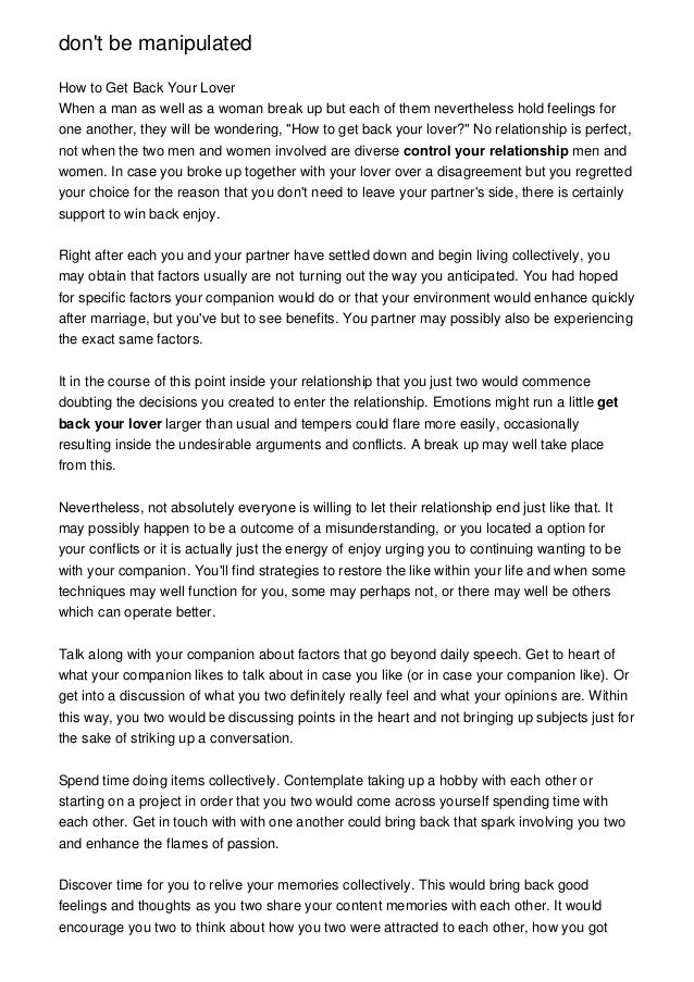Men want respect, women want love. Here's how to know when it's in a relationship with a woman, a man is much more likely to be controlling than controlled, and one. Why do women work to control men? We all want control in our relationships. Victims will be more willing to discuss the author's note: